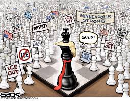 Unfortunately for the wood-be king, the peasants in Minnesota have been behaving very poorly. Instead of applauding sweeping immigration crackdowns and thousands of federal agents descending on their neighborhoods, they’ve taken to marching in the streets, closing businesses, and chanting things like “ICE out.” Tens of thousands even joined a historic general strike after fatal shootings by federal agents intensified outrage.