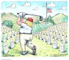 At Donald event (rally) at his golf coarse in Florida where he continued to lie about what he did in his 4 years and actually tell his sycophants the truth about 2025 project. He in his macho manner challenged President Biden to an 18 hole golf match even offering to give Joe 10 strokes. President Biden did not dignify the challenge, not because he is unable to play, but because he he is actually campaigning and still doing the job he was elected in 2020 to do, something Donald Trump would not understand. So when the Trump campaign decries that Biden is afraid to accept the golf challenge just tell them to F… off,