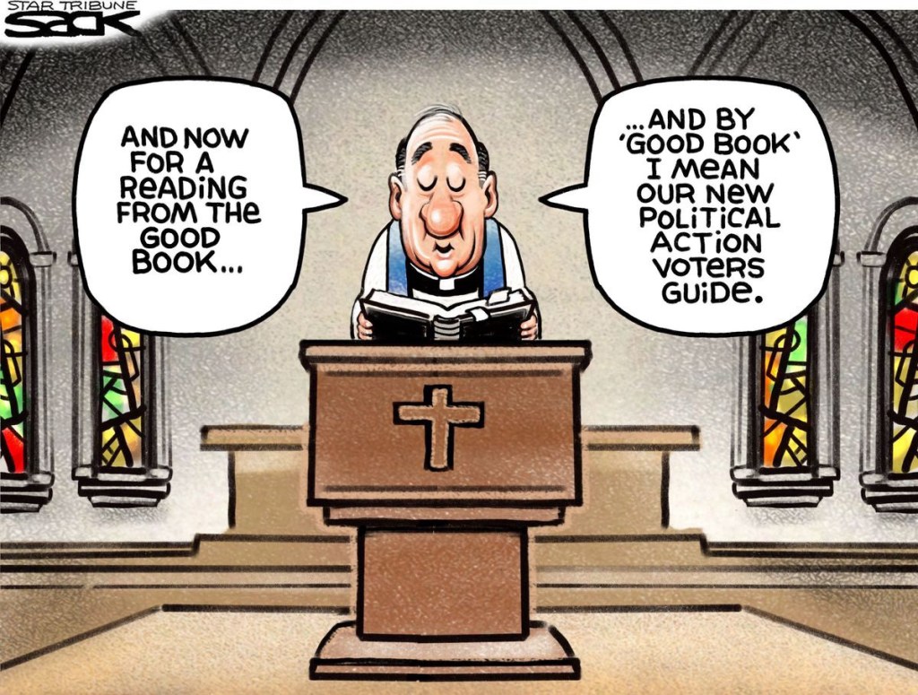 Politics and religion are again meeting in a way that is detrimental to the Constitution and the nation. Churches are supposed to be nonprofit, but judging by the opulence of the buildings they build and the way most of the leaders of churches live, nonprofit is just a nonsense concept.
