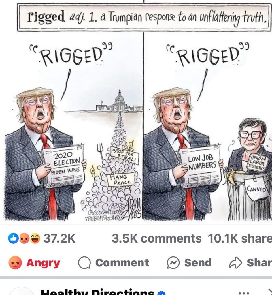 Fast forward to 2016: Trump won the presidency, but lost the popular vote by nearly 3 million. Most people might consider that a technical win and focus on the job at hand, but not Donald. Instead, he insisted — without a shred of credible evidence — that millions of people voted illegally. Why? Because the numbers dared to suggest not everyone loved him. So again, rigged.