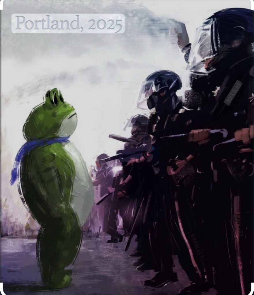 The footage, of course, told a different story. There were no car bombs, no weapons caches, just a parade of overly caffeinated twenty-somethings twirling in rainbow tutus. But to the talking heads on “serious” news channels, Portland had descended into anarchy. “The city is lost!” they cried, as a slow-motion clip of a frog-costumed protester gently waved a peace sign in the background.