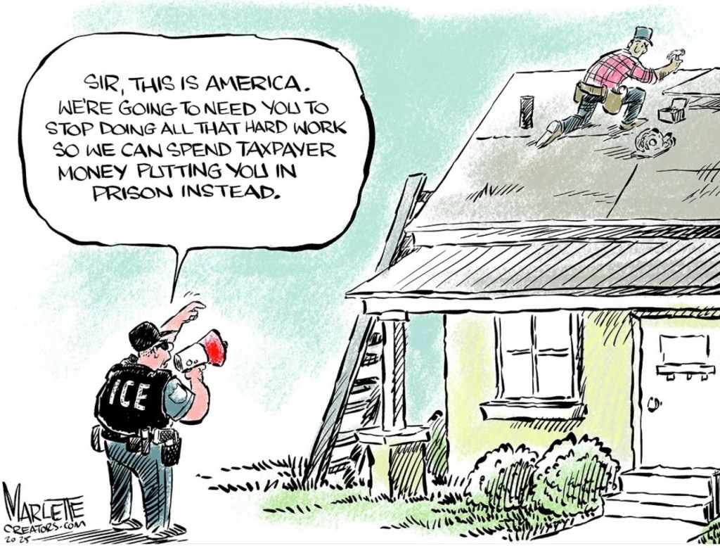 And then there’s the grotesque irony — the very same red states screaming about “illegals” and “border chaos” are the ones whose farms, factories, and slaughterhouses would collapse overnight if those very “illegals” stopped showing up. ICE isn’t protecting American jobs — it’s protecting a narrative. A delusional story that the only way to keep America safe is to destroy the lives of the powerless.