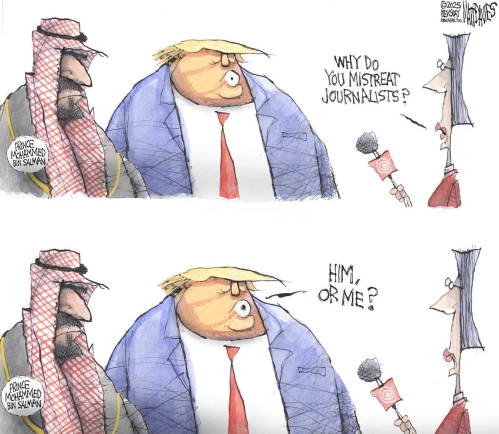 And of course, in true Trumpian form, he couldn’t defend a foreign leader accused of a horrifying act without also attacking our own press. Because what is Trumpian loyalty without a little domestic hostility? He denounced American journalists with the same gusto he uses on his teleprompter when it dares scroll too slowly.