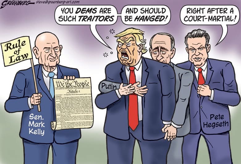 And what’s Kelly’s crime? What high betrayal of the republic did he commit? Did he sell nuclear secrets? Stage a coup? Launch a rocket labeled “Democracy” directly into Mar-a-Lago? No. He participated in a public service announcement reminding U.S. service members of something so basic it’s literally printed in the UCMJ: