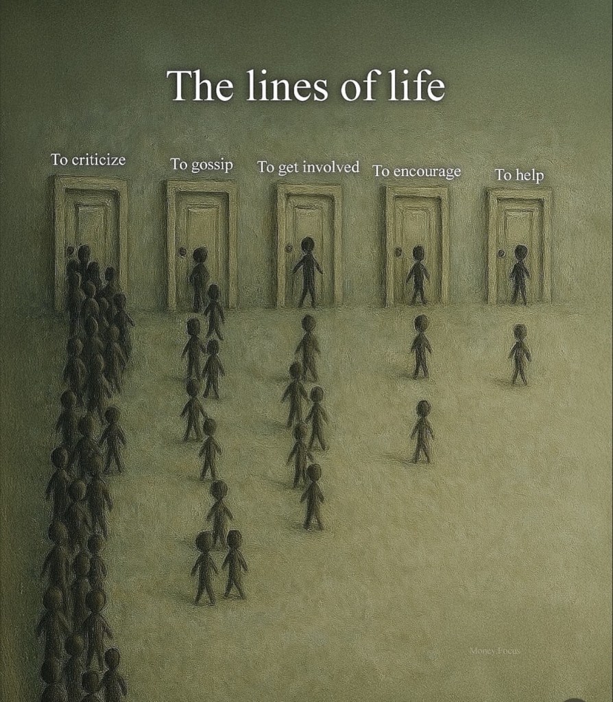 When something happens—a crisis, an injustice, a person simply struggling—there are always more people willing to talk about it than to do something for it. Gossip is safe; helping is not. Commentary costs nothing; compassion demands time, effort, vulnerability. So across history and across cultures, the pattern repeats: the longest line is always the line of those who stand back with folded arms, ready with opinions but not with hands.