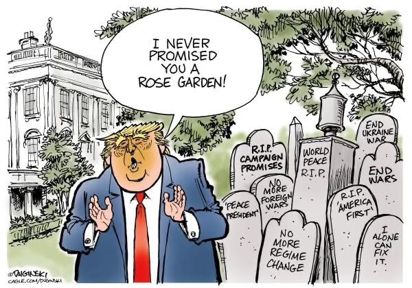 At this point, calling it “peace through strength” feels a bit like calling a five-alarm fire “ambient warmth.”