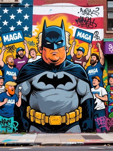 What’s even more unbelievable is that Trump actually sees himself as the hero in this comic book drama—the lone caped crusader standing between “real Americans” and a horde of imported villains. Never mind that his own inner circle has been more of a rogues’ gallery than any asylum intake list: convicted felons, indicted advisors, grifters, and would-be coup plotters. If anyone’s running Arkham, it’s not Biden—it’s Mar-a-Lago.