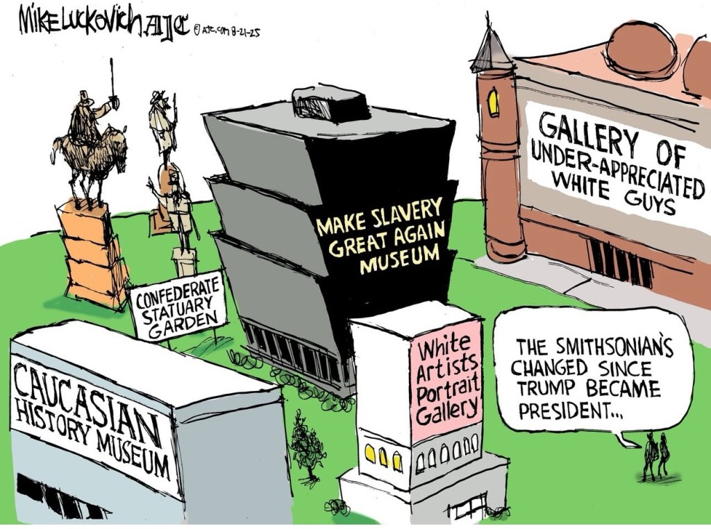 This administration seems hell-bent on erasing the “uncomfortable bits” of our national story, like slavery—a 250-year institution that built the economy, tore families apart, and left scars still visible today. But sure, let’s not put that in museums or archives. Because what’s history if not a Hallmark card version of events, with all the violence, chains, and human degradation neatly airbrushed out? Apparently, we’re supposed to believe that pretending slavery wasn’t so bad will heal wounds. Spoiler alert: it won’t. It will just make us a nation of historical amnesiacs congratulating ourselves for our “greatness” while ignoring the bones beneath the foundation.